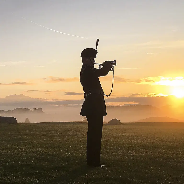 The Bugle has traditionally been used in the past to communicate with, and to direct Riflemen. The Bugle was adopted for use in the eighteenth century as it was light and easy to use unlike the cumbersome drum and carried its note, clear for up to three miles whereas a drum signal became indistinct. It was originally an Ox Horn Bugle but later made in silver which gave a clearer note. The Bugle is central to The Rifles’ musical traditions, but music has been carried forward from all of our forming regiments. Daily routine in the battalions is marked by Bugle calls, and The Rifles sound, rather than beat, Retreat.