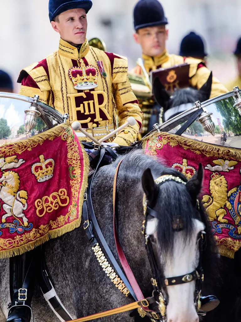 In 1805 King George III personally presented a pair of solid-silver Kettledrums to the Royal Horse Guards as ‘testimony to their honorable and military conduct on all occasions’. These kettledrums continue to be used today and are carried by the Drum Horse on the King's Birthday Parade.