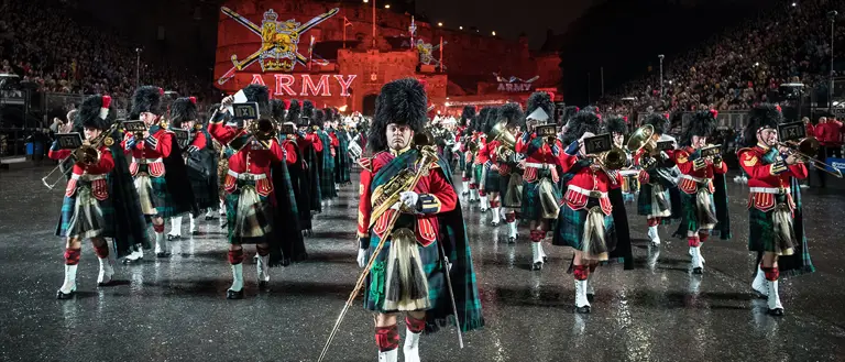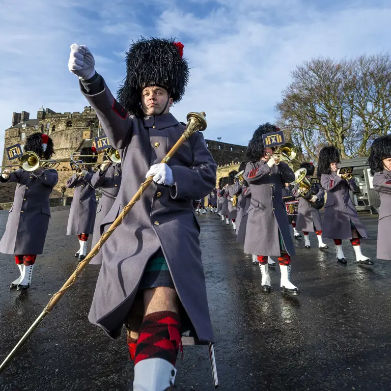 The Band of The Royal Regiment of Scotland is comprised of musicians from The Royal Corps of Army Music and is one of 14 Regular Army Bands in the British Army. Based in Edinburgh, its main tasks include supporting the British Army at ceremonial occasions that occur in Scotland, including Garden Parties, State Banquets and Guards of Honour at The Palace of Holyrood House, Edinburgh and Stirling Castles, and Balmoral.