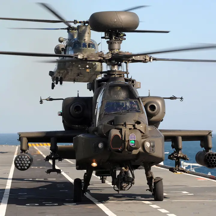 Using the distinctive Longbow radar located above the main rotor blades, the Apache can detect and classify up to 256 potential targets, display 128 of these to the crew and prioritise the top 16 threats, all in a matter of seconds. It carries a mix of weapons that include a 30mm chain gun, 70mm rockets and Hellfire missiles to provide choice for the commander and flexibility during the mission.