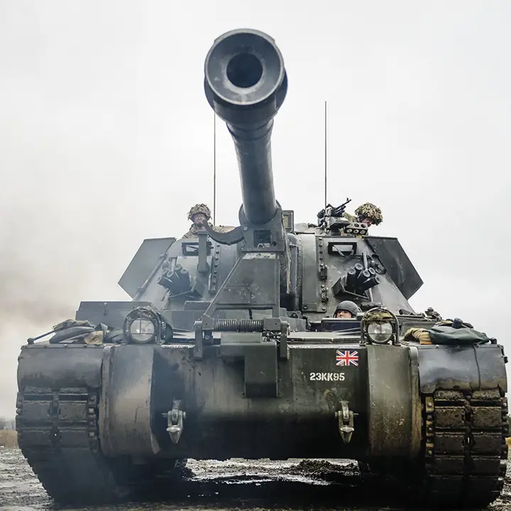 The AS90 is a 155mm self-propelled gun that equips three field regiments of the Royal Horse Artillery and Royal Artillery.