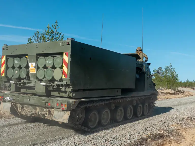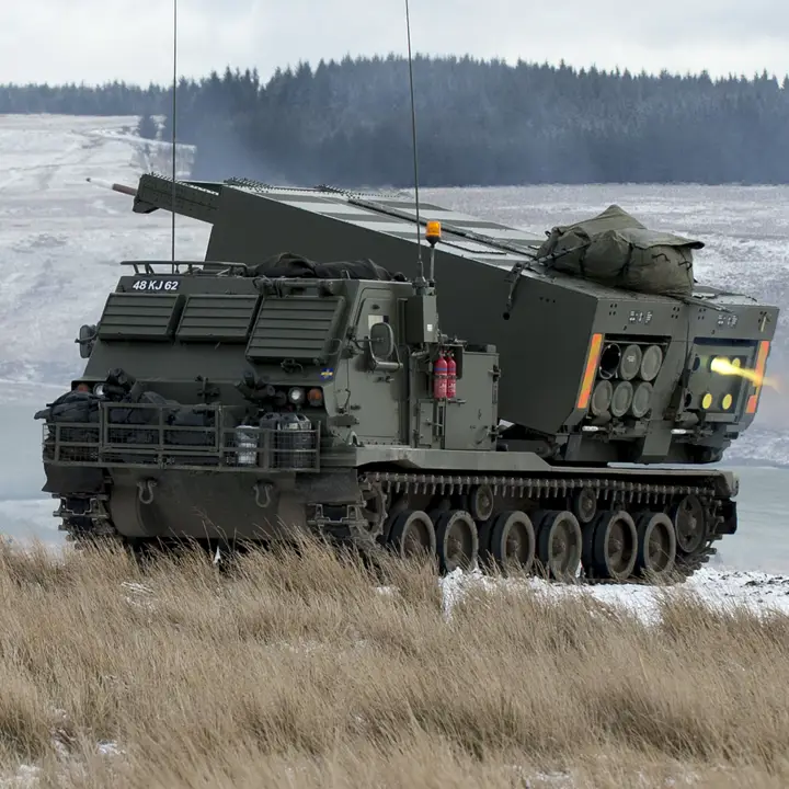 The GMLRS fires surface-to-surface rockets and the army tactical missile system (ATACMS). Without leaving the cab, the crew of three (driver, gunner and section chief) can fire up to 12 rockets in less than 60 seconds.