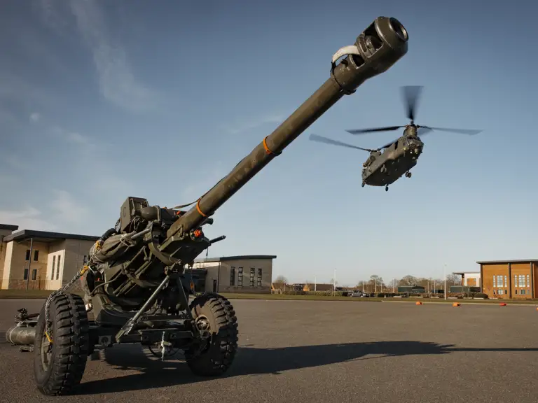 The light gun can be towed by a medium-weight vehicle or carried around the battlefield underslung by a Chinook helicopter.