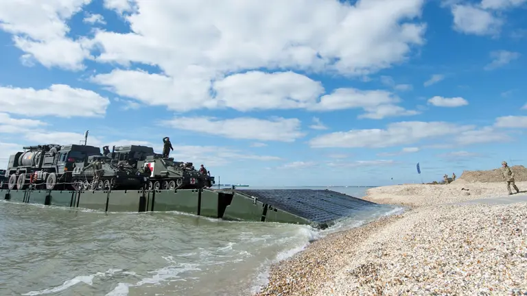 It is capable of transferring a cargo of vehicles and equipment up to 198 tonnes and is routinely deployed worldwide via Royal Fleet Auxiliary Landing Ship Dock Auxiliary.