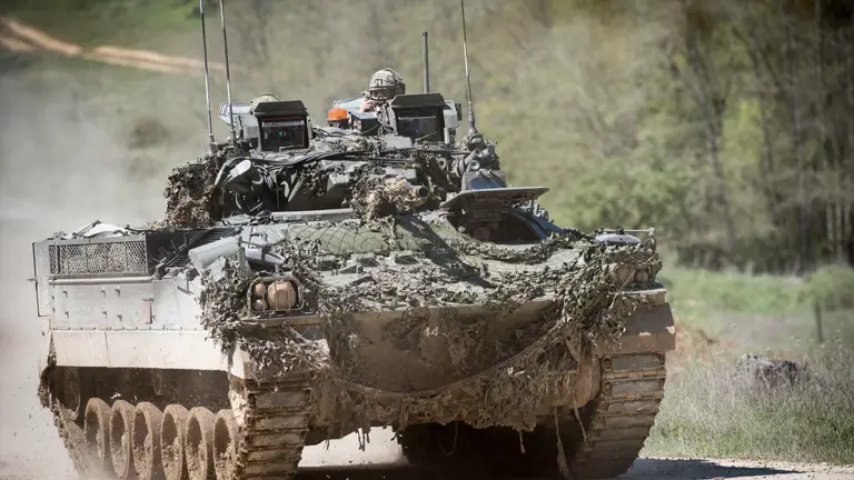 The Warrior infantry fighting vehicle has the speed and performance to keep up with Challenger 2 main battle tanks over the most difficult terrain, and the firepower and armour to support infantry in the assault.