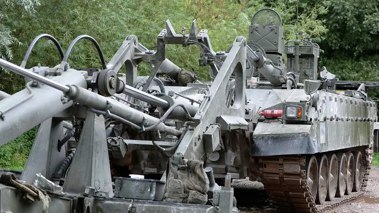 Titan is an armoured engineer vehicle designed to enable troops and vehicles to cross gaps of up to 60 metres by laying a selection of close support bridges. Along with Trojan it gives a common heavy armour fleet based on the Challenger 2 Main Battle Tank chassis.