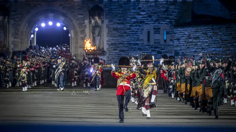 As night falls over Edinburgh Castle, each evening’s performance will end with a dramatic rousing finale when the National Anthem will be performed by The Massed Bands of His Majesty’s Royal Marines.