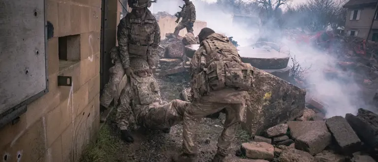 The exercise culminated in the medics supporting an attack on the Copehill Down training village by 4th Battalion The Royal Regiment of Scotland.