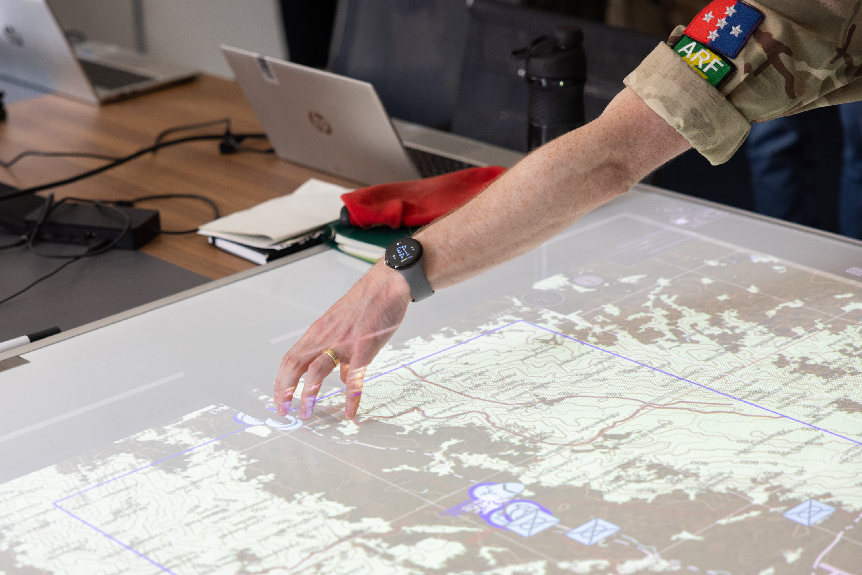 The visitors then engaged in Exercise Redcap Typhon, using advanced Defence Virtual Simulation software to practise realistic scenarios. Commanding Officer, Lieutenant Colonel Michael Boyd, presented the visitors with a regimental shield from 1RMP as a symbol of their partnership.