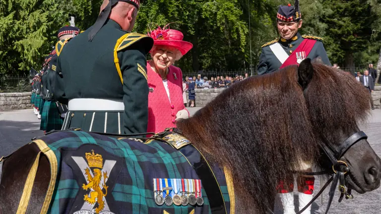 Corporal (Cpl) Cruachan IV, a Shetland pony and beloved mascot of The Royal Regiment of Scotland, is renowned for his cheeky antics at high-profile ceremonial events, even more-so when members of the Royal Family are present.