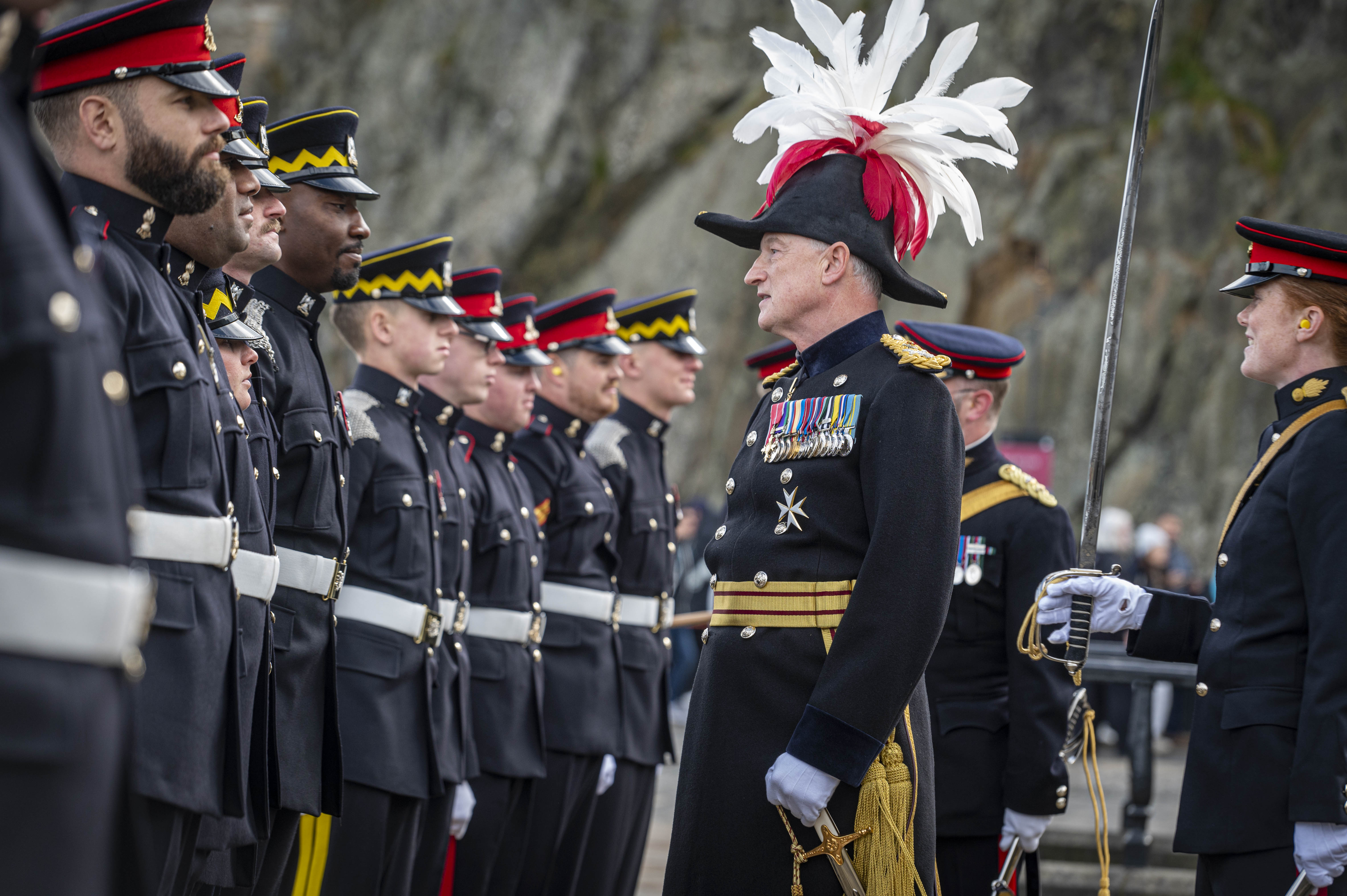 The Saluting Troop was made up of members from the 4th Regiment Royal Artillery, the Royal Scots Dragoon Guards, and a member of the RAF Regiment. Musical accompaniment was provided by The Band of The Royal Regiment of Scotland.