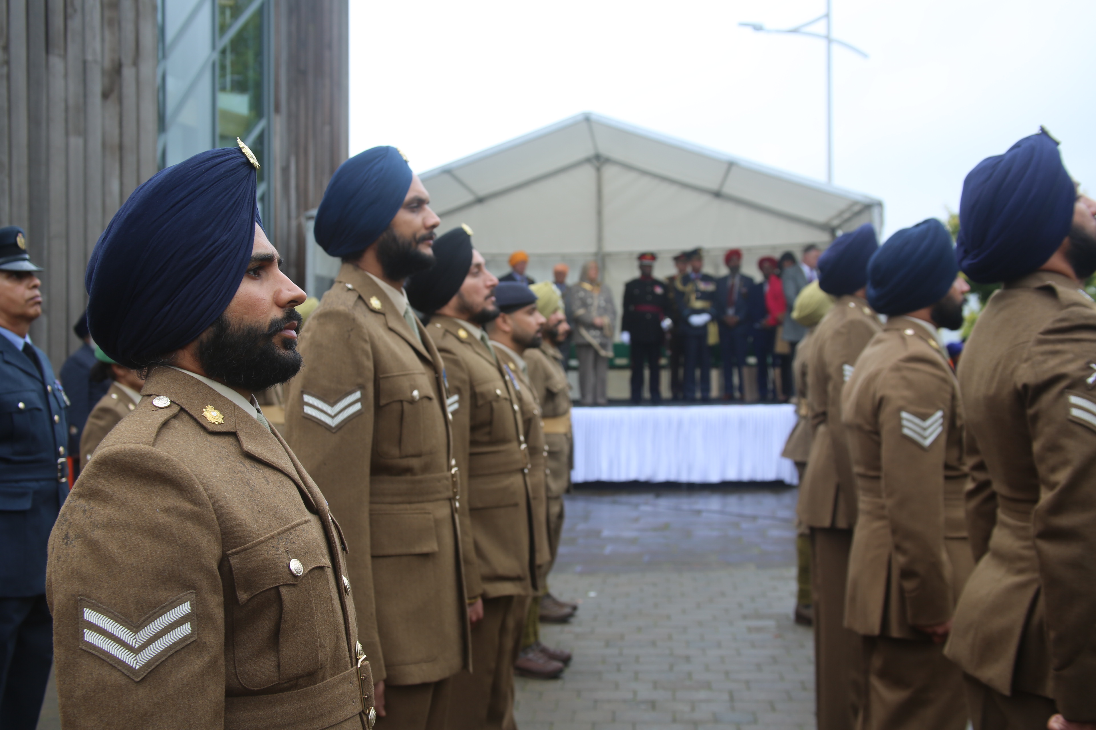 The Defence Sikh Network was proud to provide 28 serving Sikh personnel from the Armed Forces who formed a marching parade with the British Army Band Tidworth providing musical support.