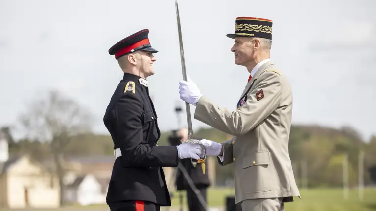 There was a distinct Gallic tone to a passing out parade for Officer Cadets at the Royal Military Academy Sandhurst today.