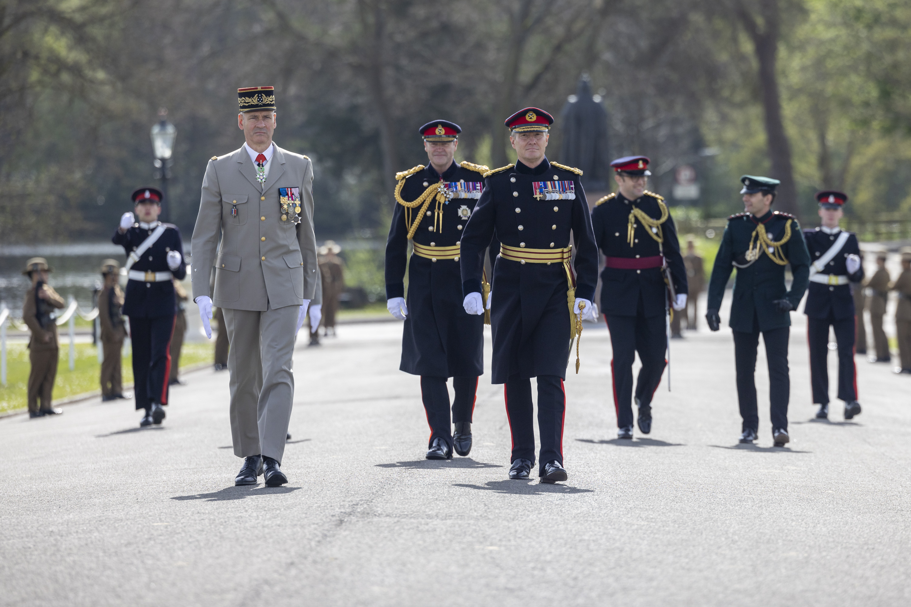 Escorted by Major General Zac Stenning, the Commandant of the Royal Military Academy Sandhurst, Général Pierre Schill inspected the ranks of those commissioning in the Senior Division as the Band of the Scots Guards struck up a medley of tunes.