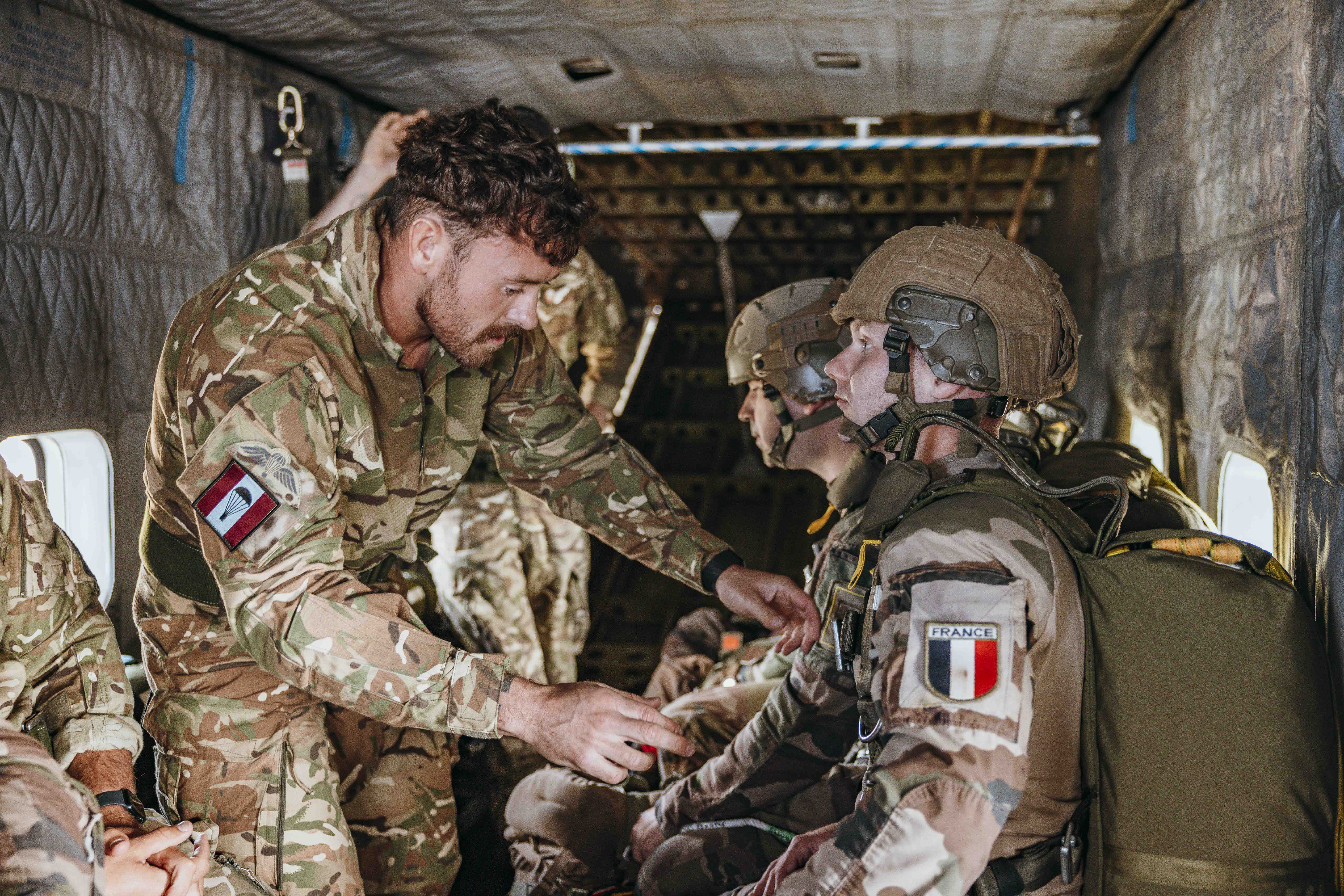 As well as an example of Franco-British military co-operation, British airborne forces are a partnership between the Army and the RAF. Parachute training is jointly delivered by Army and RAF PJIs, while paratroopers jump from RAF A400M transport aircraft in tactical scenarios.