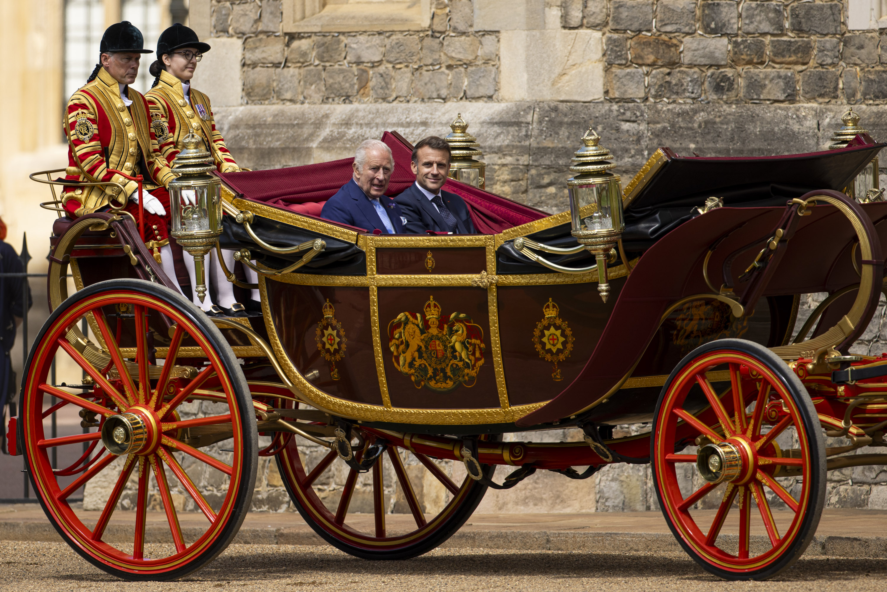 The streets were bedecked with French Tricolor and British Union Flags and the crowds cheered as the procession made its way to Windsor Castle.