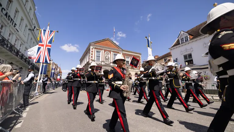 It is the first time a State Visit has been hosted at Windsor Castle since 2014, and everyone was determined to make it a spectacular event. In anticipation of the arrival, bands from all three services performed incidental music throughout the processional route to entertain the crowds of visitors. Some had been especially chosen to complement the visiting nation and celebrated centuries of combined French history with the UK.