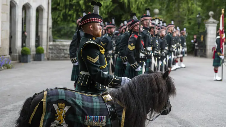 Shetland pony, Cpl Cruachan IV (the mascot of the Royal Regiment of Scotland), who is no stranger to Balmoral, was also present.