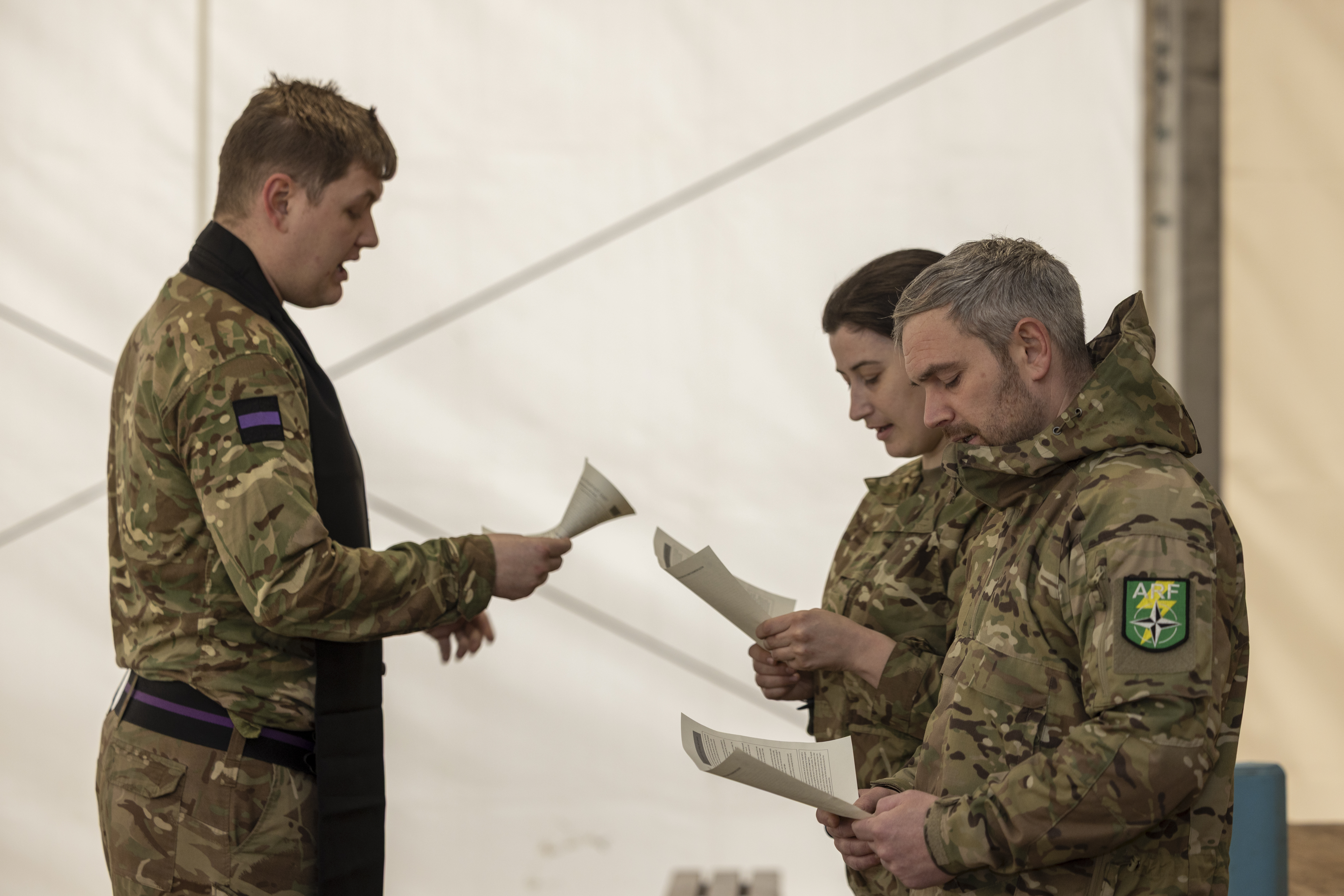 During the service Colour Sergeant (CSgt) Ryan Grant, 4th Battalion, The Royal Regiment of Scotland (4 SCOTS) and Corporal (Cpl) Lindsay Clarke, 21 Multi-role Medical Regiment (21 MMR), who had made the conscious decision to be baptised whilst on exercise, openly spoke to their fellow soldiers: