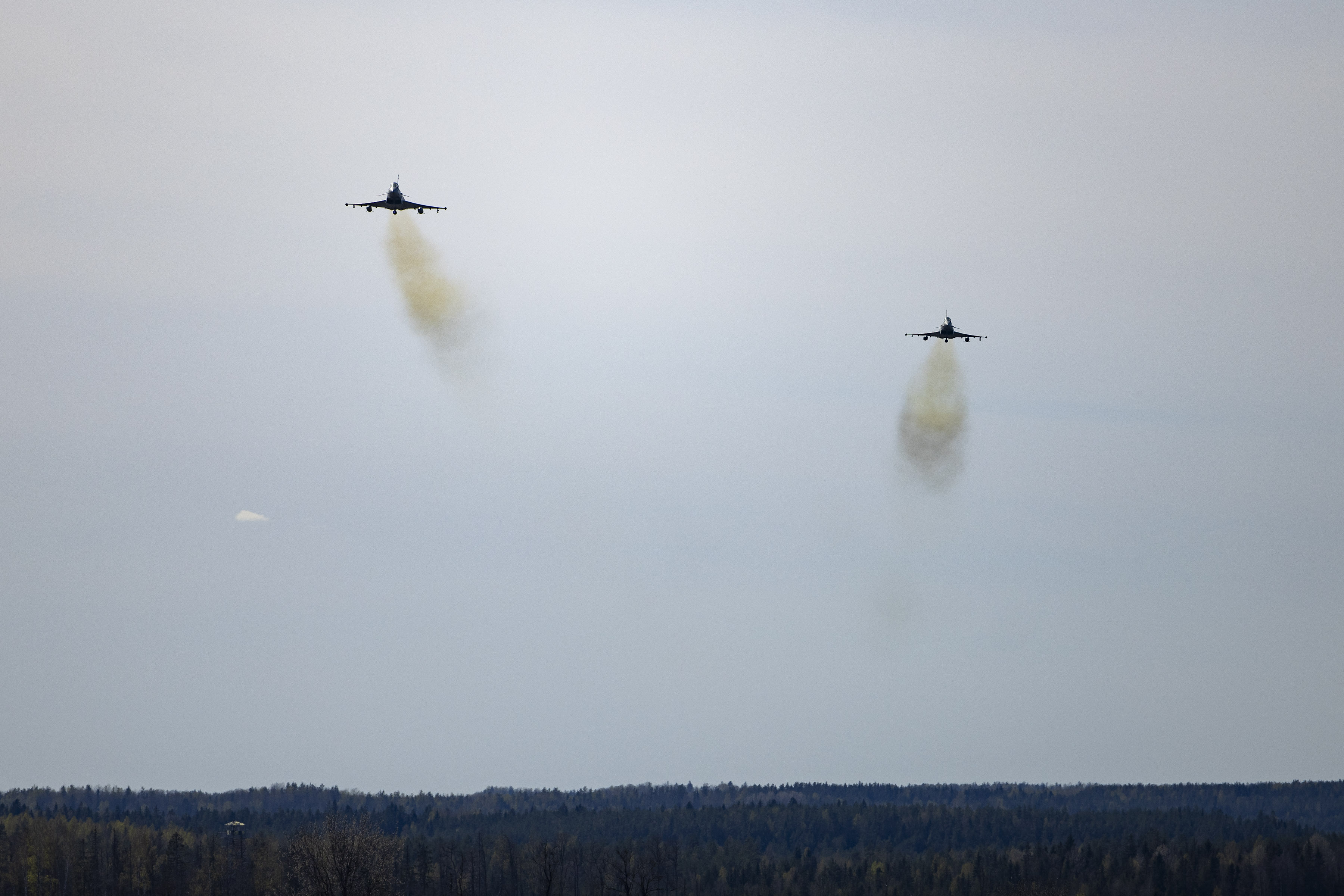 With support from Typhoon fighter jets, Apache AH-64E attack helicopters and artillery, paratroopers on a major NATO exercise in Estonia have shown the firepower they can bring to bear.