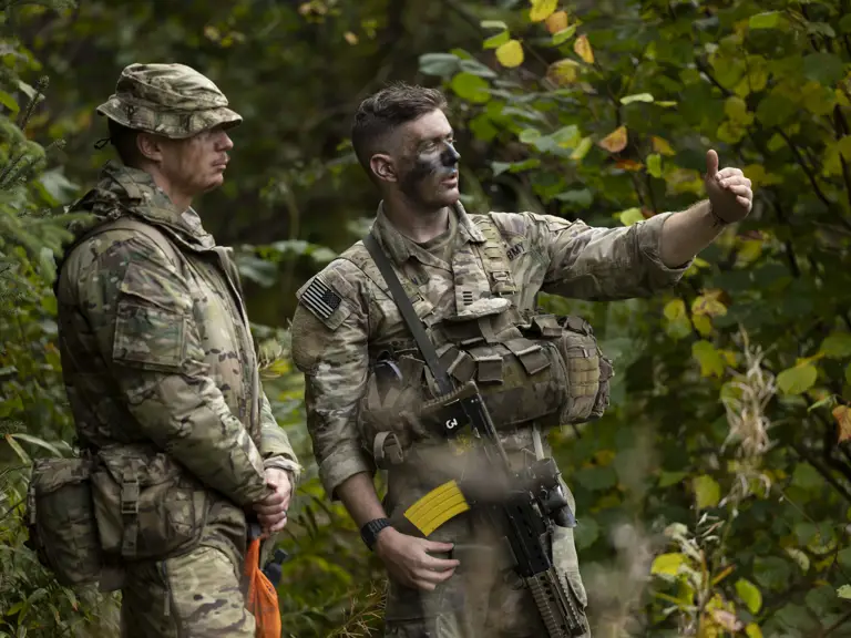 The exercise uses eight-person teams. These teams move across difficult ground and carry out military tasks that test key Army skills.