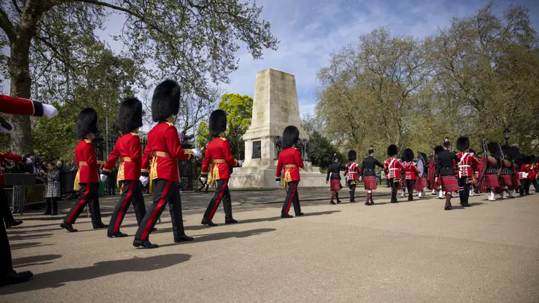 As The Duke said his final farewells, his route was lined by members of the regiment from the 1st Battalion Scots Guards, F Company Scots Guards, G Company London Guards, the Band of the Scots Guards, and association veterans, all loudly cheering their Colonel. Their cheers and the sound of the Pipe Major performing “Highlan’ Laddie” – the Scots Guards' regimental march – followed for long after he was gone.