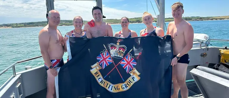The team has trained for the last year for the challenge, with a mix of indoor swimming pool, at Aldershot garrison, and open water sessions, from Poole in Dorset to the warmer Mediterranean Sea in Cyprus.