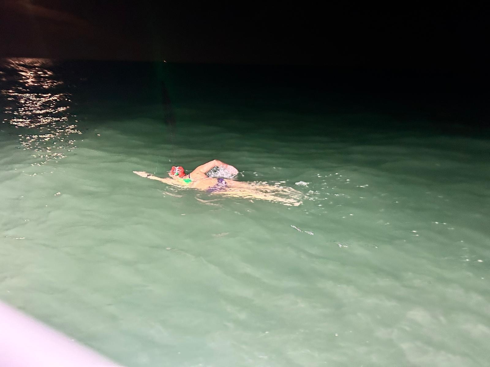 One of the biggest hurdles faced by the team was swimming in pitch blackness as they dived into the dark waters of the Channel for the first half of the crossing.