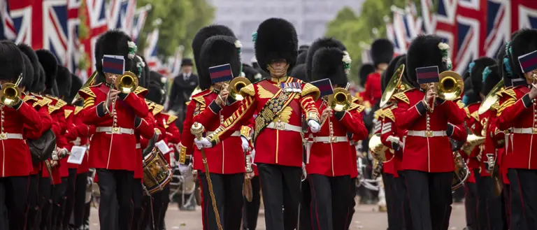 The King is the Colonel in Chief of the seven Guards regiments, seeing them regularly through their ceremonial role in guarding the Royal Palaces. All seven regiments of the Household Division will be taking part in the Birthday parade, together with their Regimental Bands. This includes the five regiments of the Foot Guards: The Grenadier Guards, The Coldstream Guards, The Scots Guards, The Irish Guards, The Welsh Guards, the Household Cavalry Mounted Regiment made up of The Life Guards and The Blues and Royals who will provide the Sovereign’s Escort, the mounted Band of the Household Cavalry, and the massed Foot Guards bands.