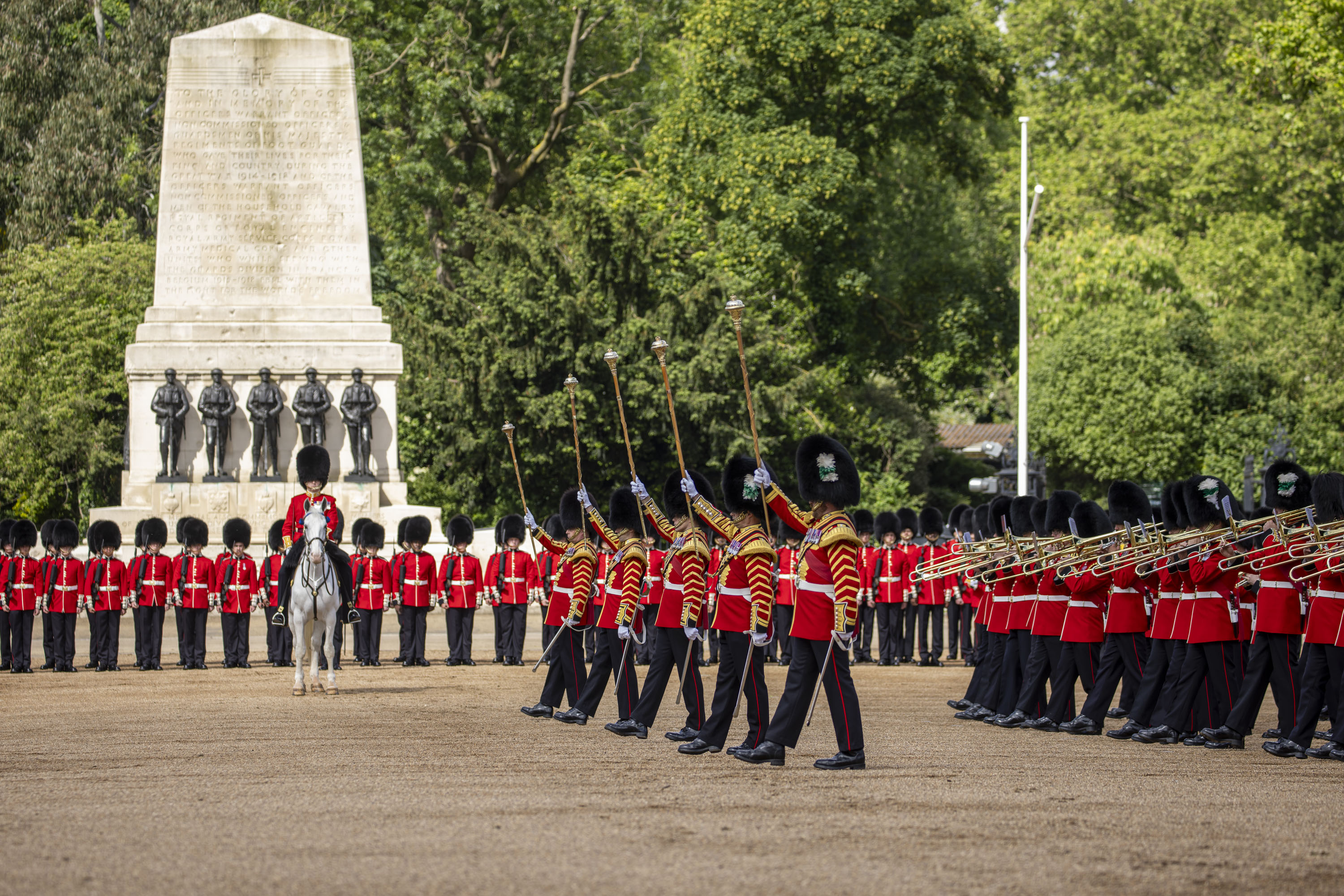 After weeks of gruelling rehearsal and painstaking preparation, two hundred and fifty musicians, twenty pipers, two hundred and forty military working horses, an extremely large dog, and almost a thousand dual role soldiers of the British Army’s Household Division will deliver a magnificent spectacle for The King, the Nation, and the World in London on Saturday 15 June.