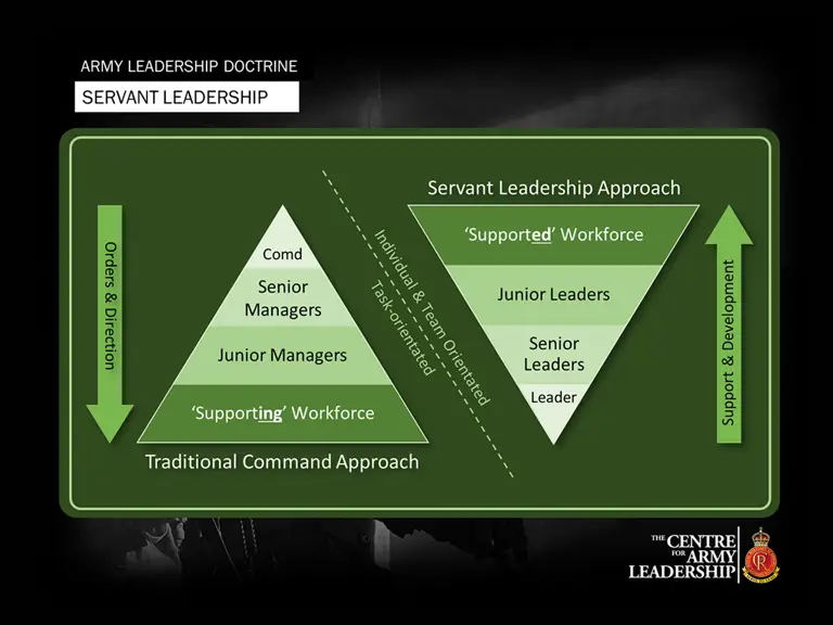 The British Army’s ‘Servant’ Leadership philosophy turns the idea of a traditional hierarchical command & management approach on its head.