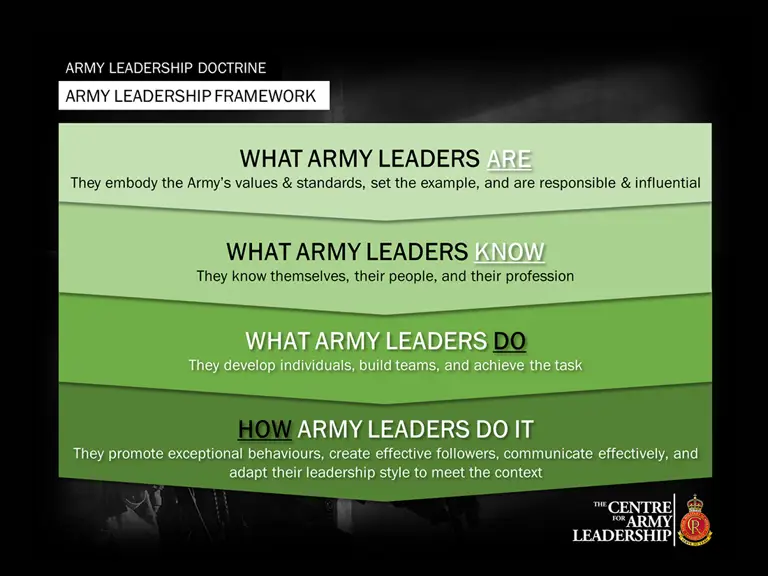 The British Army’s Leadership Framework provides the structure around which all Army leadership philosophies, doctrine and principles are framed.